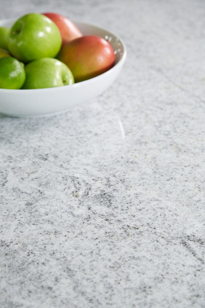 Granite is an igneous rock that is made up of primarily quartz and feldspar. It is formed by the cooling and solidification of magma (molten rock that is underground). This rock contains the natural stone that makes up countertops and other surfaces. Our Haverhill Granite from Brazil is a durable polished slab granite of whites and gray with medium variation. It blends in well with a dark color scheme. Vail White Granite features a Dalmatian-Esque look, with onyx and graphite overlaying a pale, pearly backdrop and adds the perfect touch for a classical sense of style.