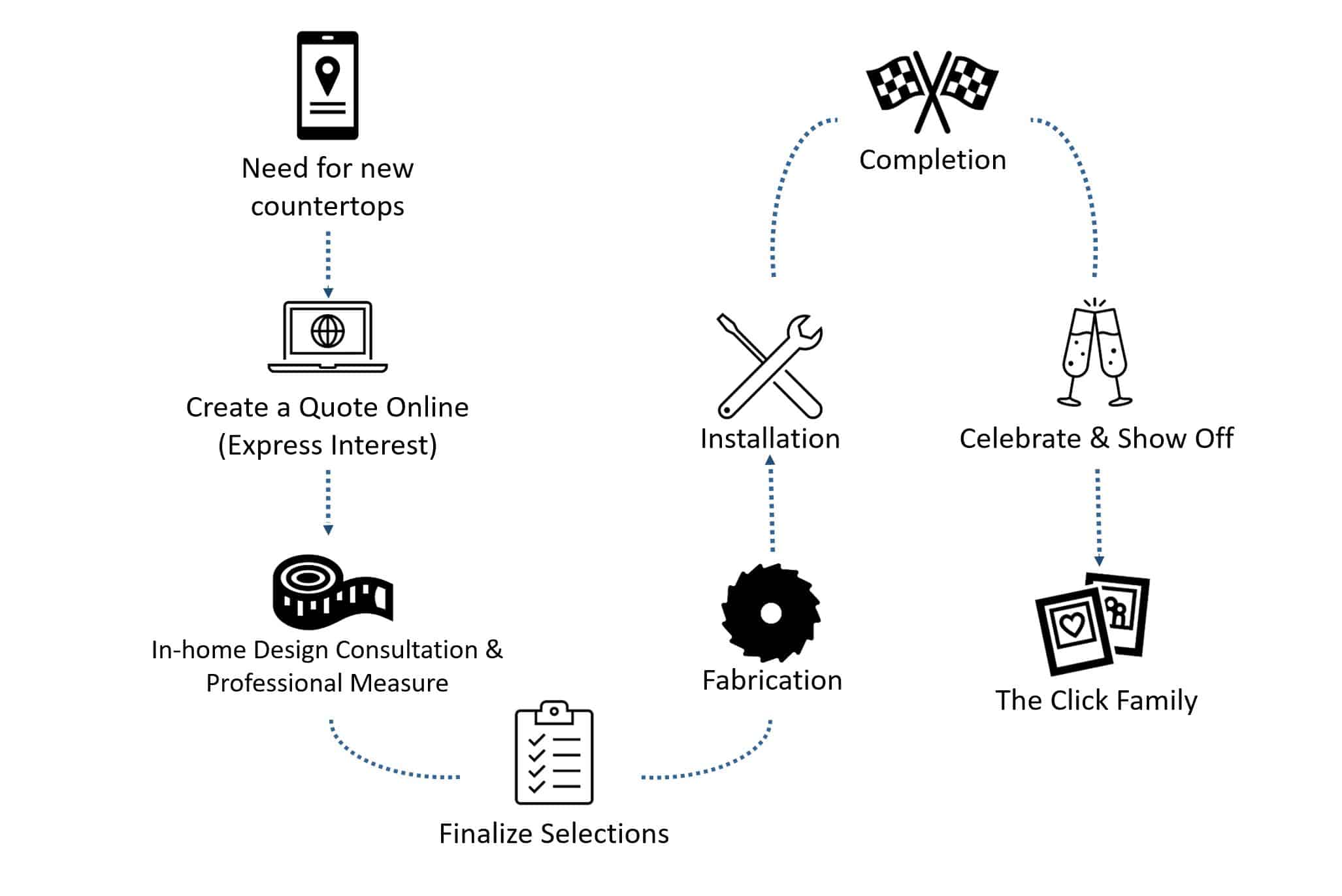 After your countertops have been cut and polished, a Click Certified Partner will bring them to your home and install your new surfaces